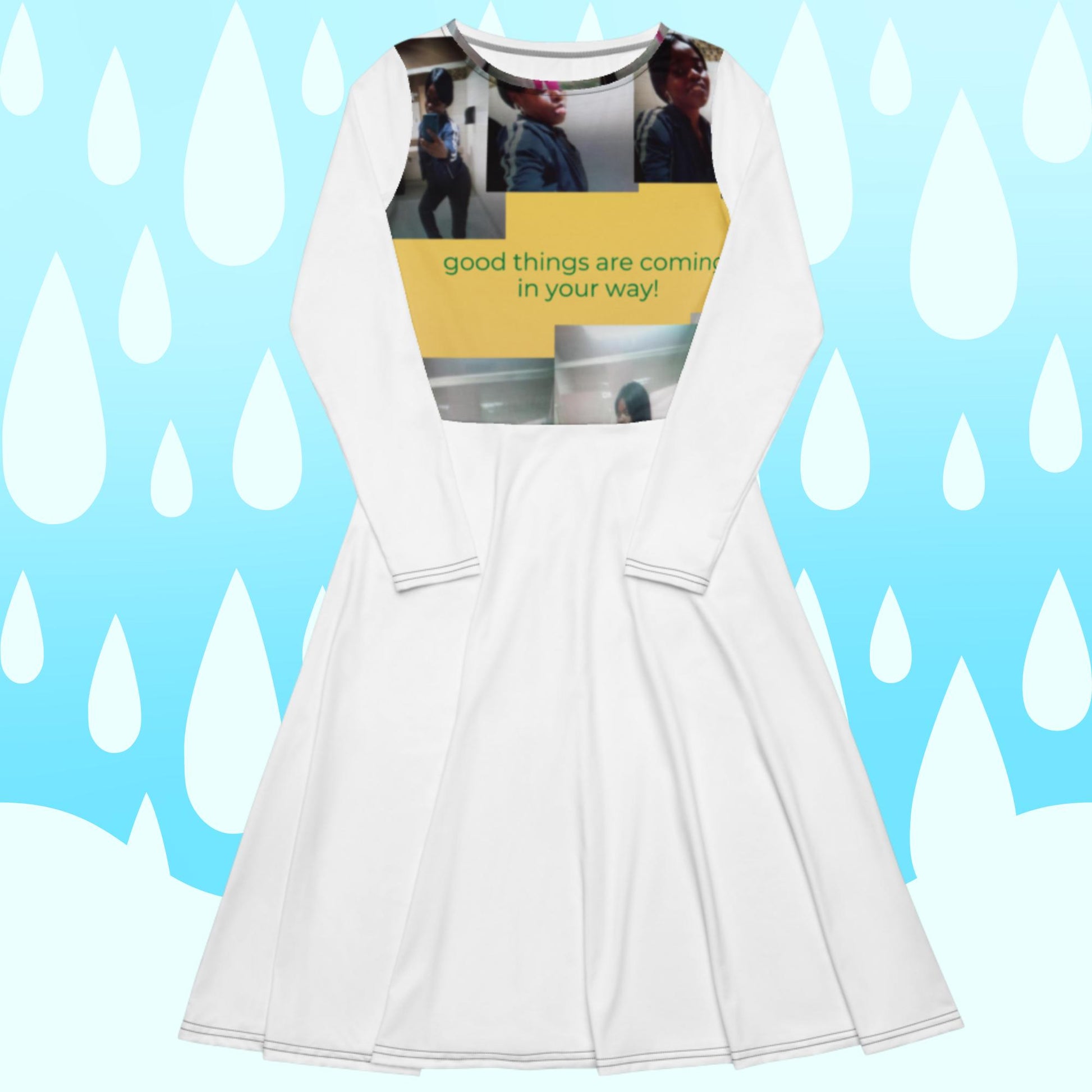 All-over print long sleeve midi dress